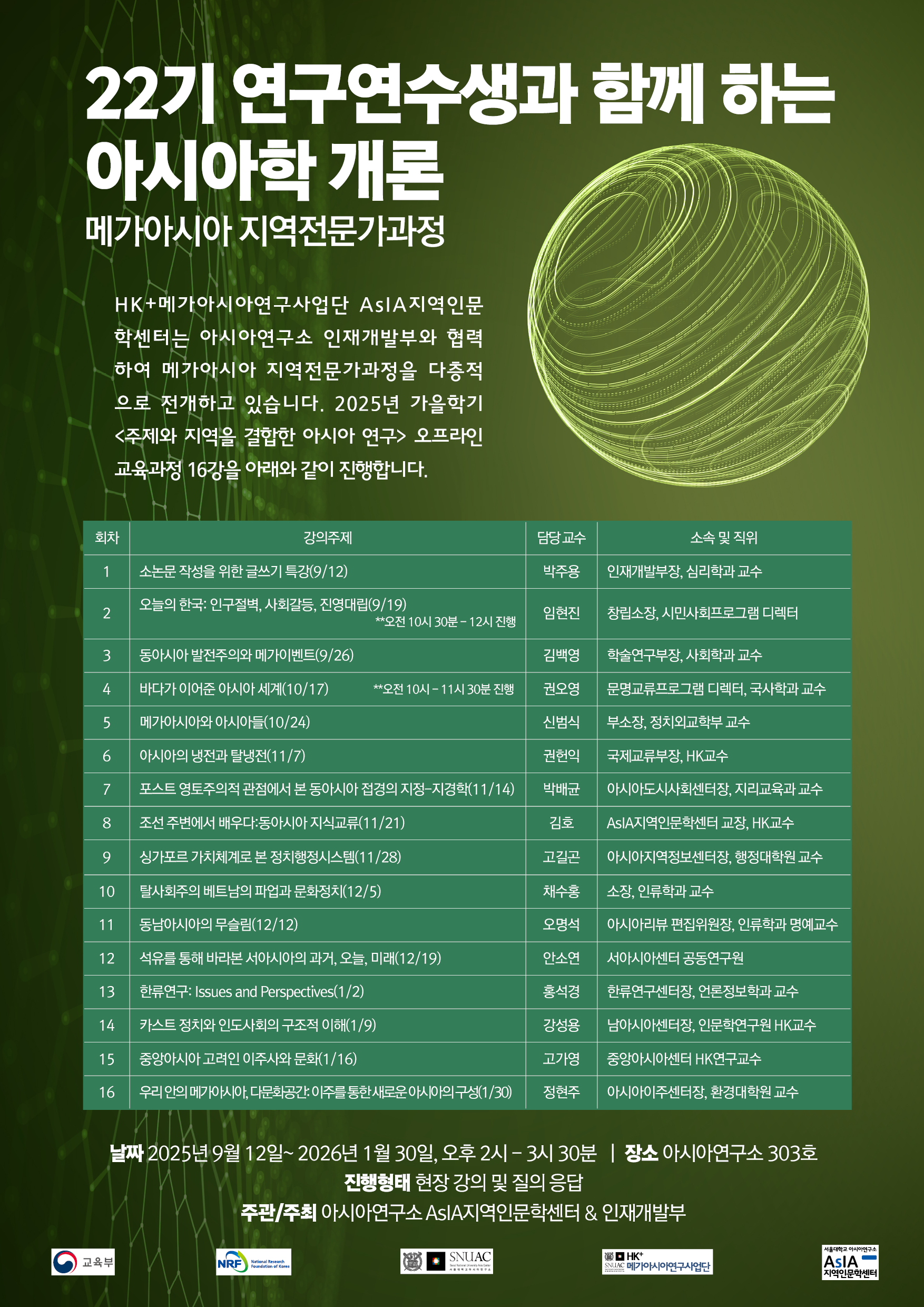 2025 가을학기 메가아시아 지역전문가과정-아시아학 개론
