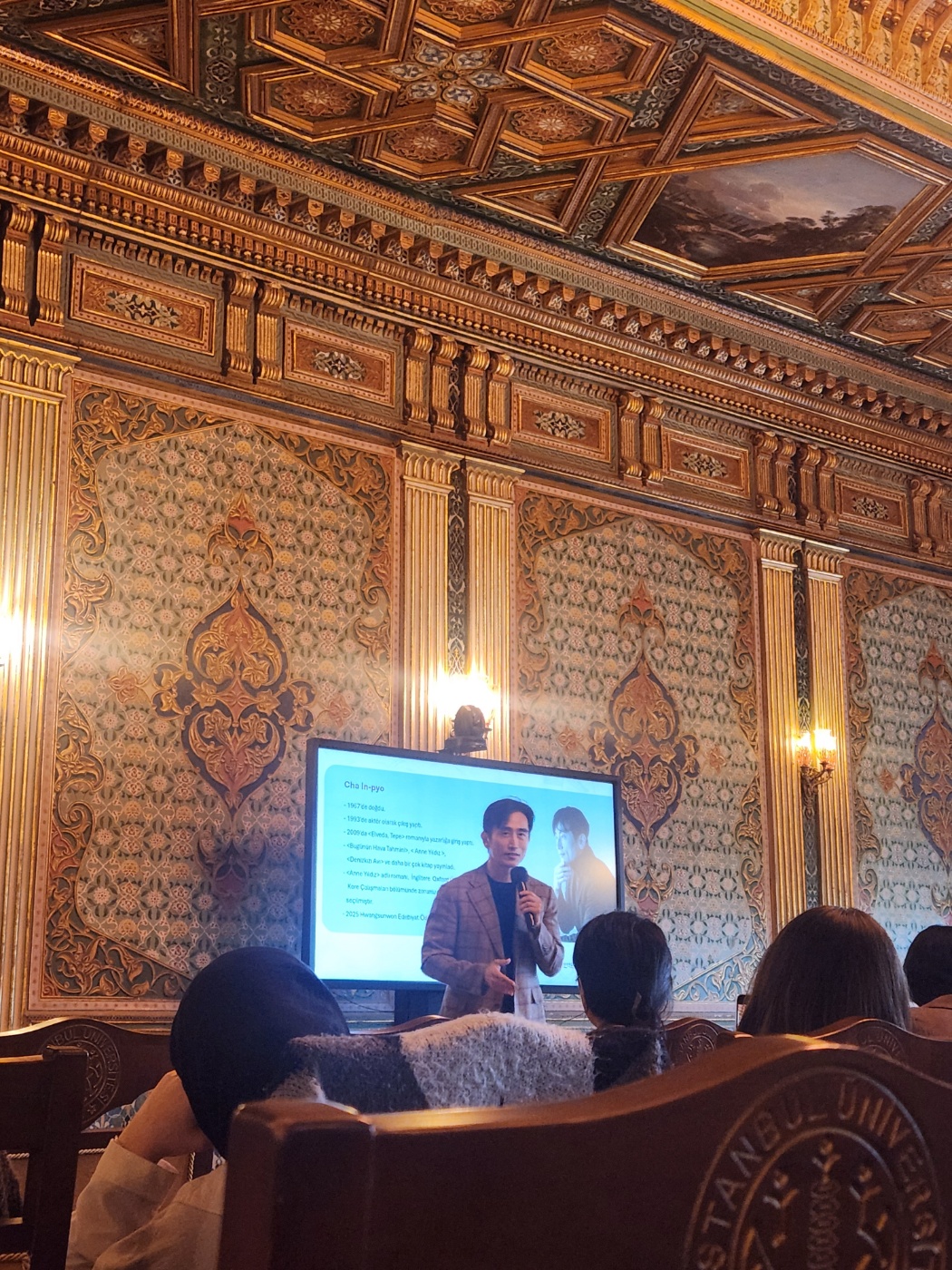 23일 10시, 이스탄불대학교 한국어문학과 교수님의 초대로 ‘차인표 작가와의 만남’에 참석하였다. 이스탄불대학교 본관 2층 블루홀(Mavi Salonu)에서 교수진과 재학생을 비롯해 주이스탄불 대한민국 총영사 및 공관 관계자, 세종학당 강사와 수강생, 재외국민과 현지 시민 등 약 120여 명이 참석한 규모가 큰 행사였다. 강연에서 차인표 작가는 한글의 미학과 작가로 성장하기까지의 경험을 진솔하게 공유하였고, 이후 차인표 작가의 소설 “인어사냥”에 대한 학생들의 독후감 발표와 질의응답을 통해 인간의 욕망과 환경 문제라는 작품의 핵심 주제를 심도 있게 논의하였다. 행사 다음날인 24일에는 한국어문학과 강사와 학생들을 대상으로 개인 인터뷰를 진행하였다. 이를 통해 해당 학과의 교육과정과 학습 환경, 학생들의 진로 현황을 파악할 수 있었으며, 튀르키예 내 한국학 연구의 후발주자임에도 불구하고 높은 학업 성취도와 경쟁력을 갖춘 학과로 자리매김하고 있음을 다시 한번 확인하는 계기가 되었다.