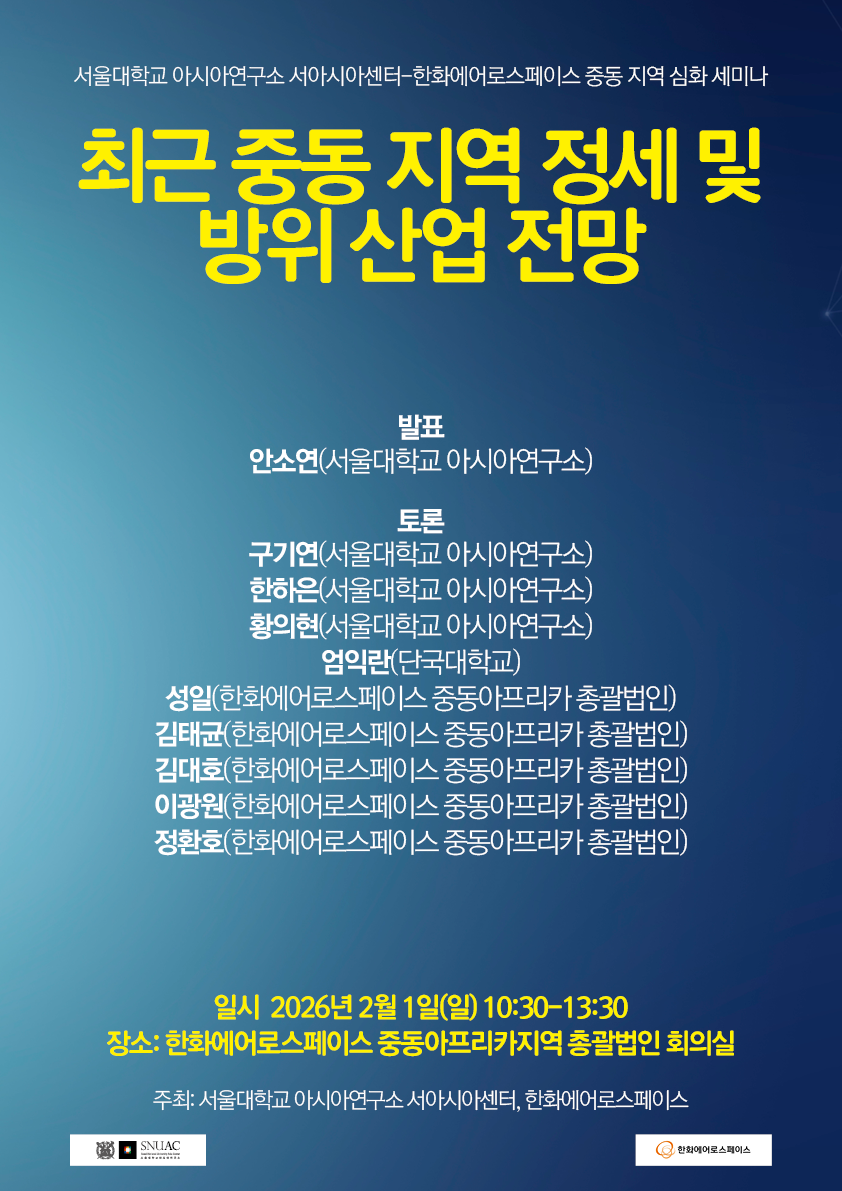 서울대학교 아시아연구소 서아시아센터 연구진은 사우디아라비아 리야드 소재 한화에어로스페이스 중동지역 총괄 […]